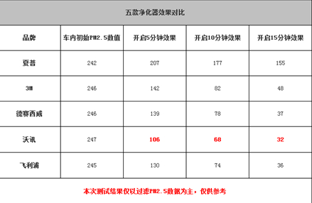 對此,小編特地搜索了沃訊V88,發(fā)現(xiàn)之前在國內(nèi)某知名汽車垂直網(wǎng)站,針對市面上幾大暢銷品牌的車載凈化器PM2.5的降塵效果做出評測,沃訊系列產(chǎn)品也有不俗表現(xiàn)。