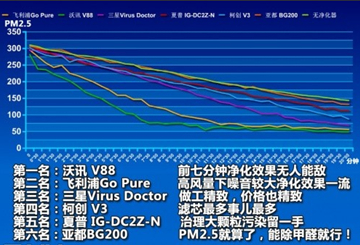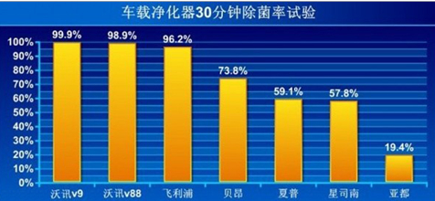 從實(shí)驗(yàn)結(jié)果來看,在PM2.5粉塵顆粒274微克/立方米的初始溶度下,車內(nèi)使用沃訊V88車載空氣凈化器20分鐘后,PM2.5粉塵顆粒最終溶度為30微克/立方米,凈化效果位居第一。